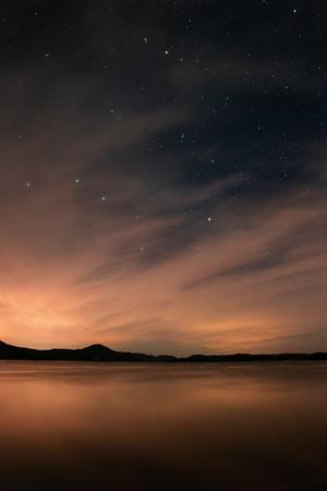 Wispy clouds, illuminated by the light of the stars and the Big Dipper, seem to float and dance across the celestial expanse along the Vermont-Canadian border over Lake Memphremagog. The serene atmosphere and expansive views of the lake and the distant mountains create a sense of wonder and awe during a crisp winter night.